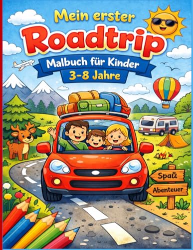 Mein erster Roadtrip: Malbuch für Kinder 3–8 Jahre: Einfache Auto- & Reisebilder mit großen Flächen, dicken Linien und lustigen Familien-Abenteuern