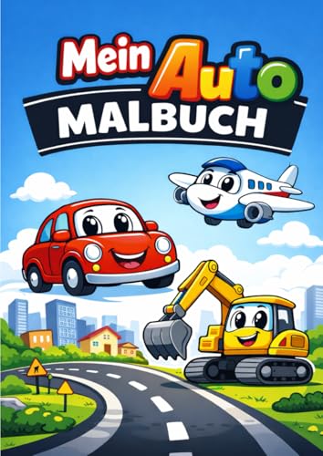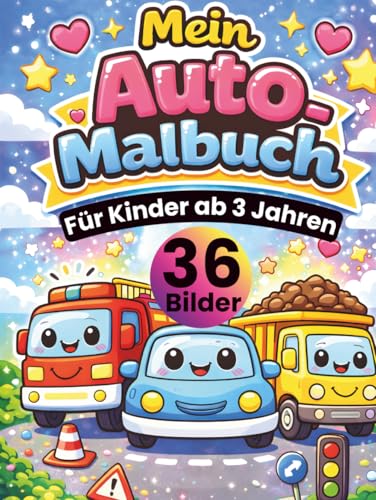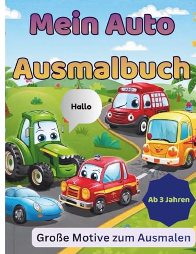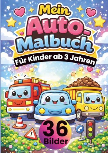 Mein Auto Malbuch für Kinder ab 3 Jahren: 36 süße Auto-Motive zum Ausmalen – Autos, Busse, Bagger & Rennfahrzeuge • große, einfache Linien • jede ... • DIN A4 Format • 36 Bilder • 72 Seiten