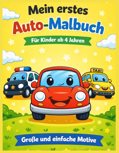 Mein erstes Auto-Malbuch: Ausmalspaß für Kinder ab 3 Jahren – mit coolen Autos, Lastwagen und Flitzern zum Anmalen und Lernen