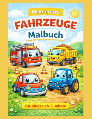 Mein erstes Fahrzeuge Malbuch: Große und einfache Ausmalbilder für Kinder ab 3 Jahren | Bagger, Traktor, Feuerwehr, Auto und mehr