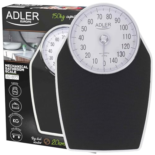 Adler AD8177 mekanisk personvåg upp till 150 kg, analog badrumsvåg hög noggrannhet, halkfri yta, icke-digital, lätt att använda, utan batterier