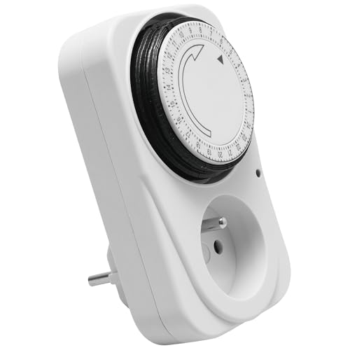 24 timmars mekanisk timer, uttag, vit, idealisk för programmering av elektriska apparater på och av.