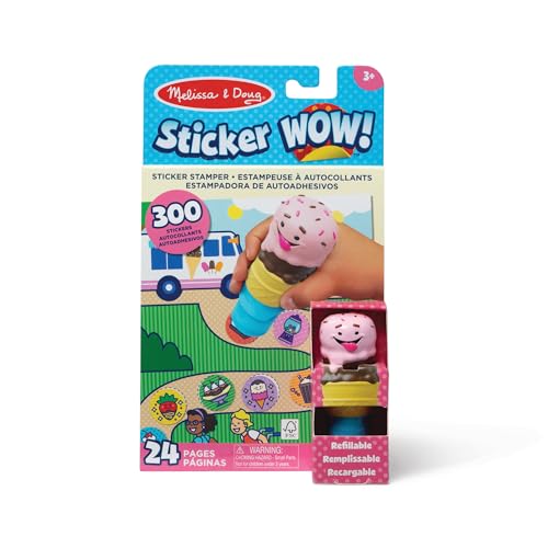 Melissa & Doug Sticker Wow! 24-sidigt aktivitetsblock och dekalstämplar, 300 klistermärken, aktivitetsleksak samlarfigur – glass