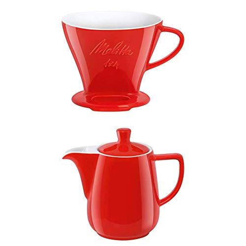 Melitta 219094 kanna porslin kaffekanna 0,6 l röd & Melitta-filter porslin kaffefilter/kanin 1x4 röd