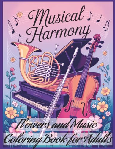 Flowers and Music Coloring Book for Adults Large Print: 60 Line Art Images of Musical Instruments for Melody Lovers