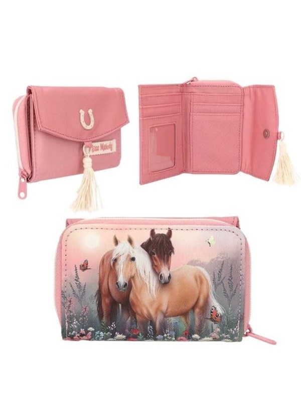 Depesche 12762 Miss Melody Flowers – liten axelväska i rosa med hästmotiv, väska med magnetlås och justerbar bärrem
