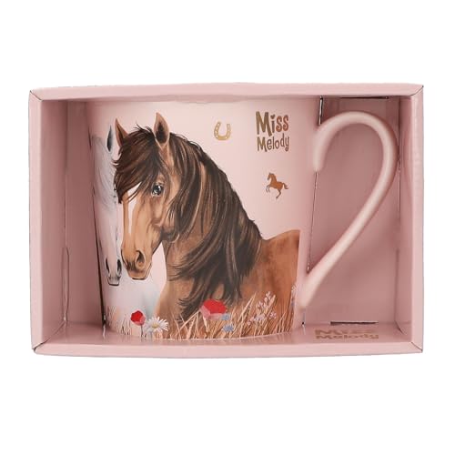 Depesche 13559 Miss Melody Dusty Rose ros med hästmotiv, blommor och ordspråk, porslin dricka kopp med handtag, kapacitet ca 300 ml, flerfärgad, en storlek