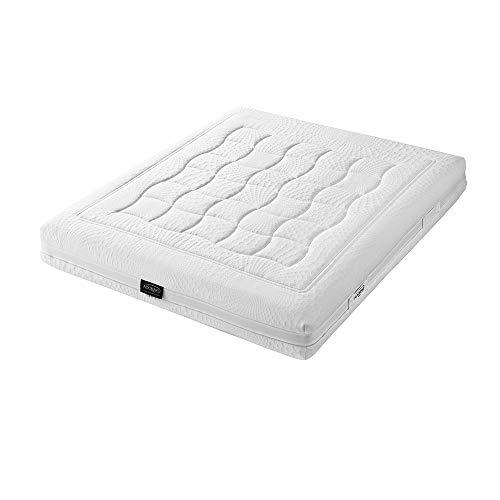TANHK Madrass Wave Flow Smart Comfort in Memory-skum, ortopedisk support med kallluftcirkulationsteknik | Hypoallergeniskt och ventilerande tyg, tillverkad i Italien, 160 x 190