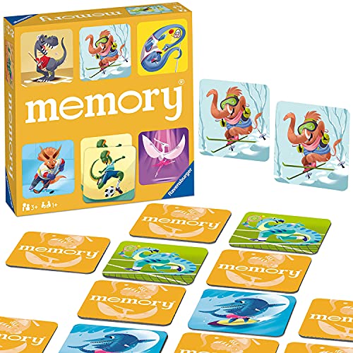 Ravensburger 20628 5 Memory Sporty Dinosaurs, Memory-spel för familjer, Rekommenderad ålder 4+, 48 Vägar