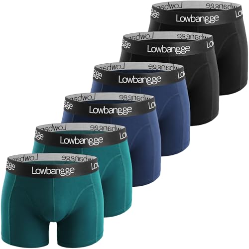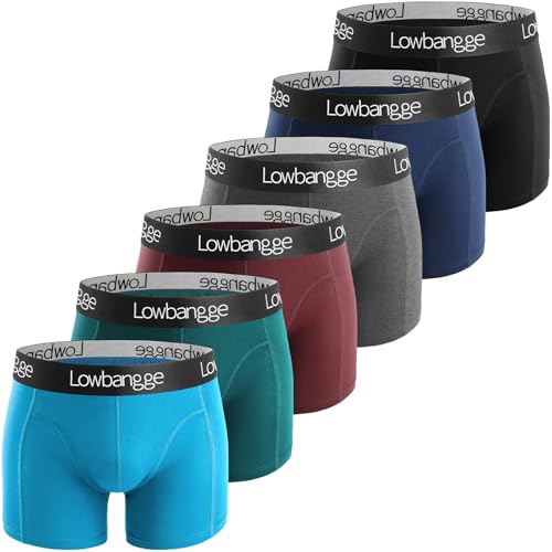 Lowbangge Men's Boxer Shorts 6-Pack - Breathable Cotton Underwear with Extended Leg for Maximum Comfort