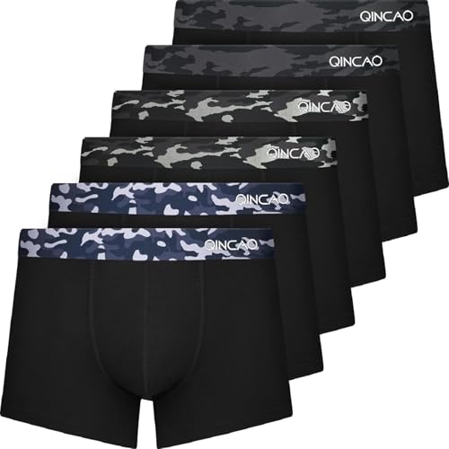 QINCAO Men's Boxer Shorts, Pack of 6 without Scratching Patches, Underwear, Boxers, Cotton (Size S - 4XL)