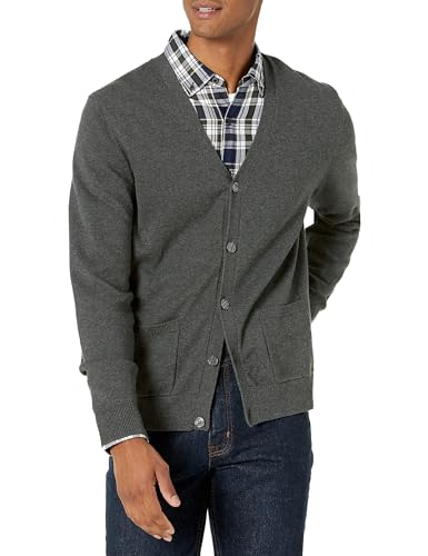 Amazon Essentials Men's Cardigan tröja i bomull, Kolsvart ljung, M