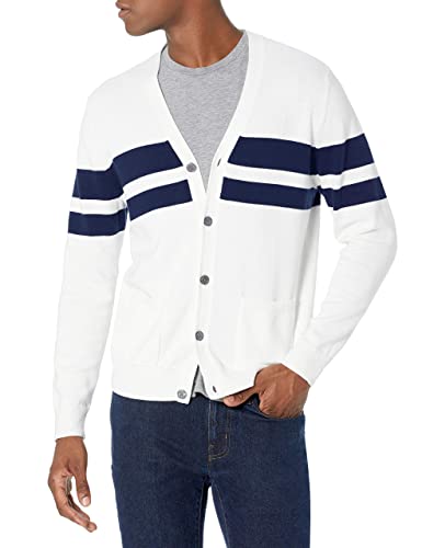 Amazon Essentials Men's Cardigan tröja i bomull, Marinblå Vit Rugbyrand, M