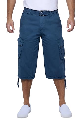 X RAY Men's Belted Long Cargo Shorts for Men, Below Knee Length Mens Cargo Shorts, 3/4 Pants (Big and Tall Shorts for Men) Majolica Blue 34