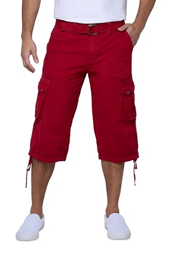X RAY Men's Belted Long Cargo Shorts for Men, Below Knee Length Mens Cargo Shorts, 3/4 Pants (Big and Tall Shorts for Men), Jester Red, 34
