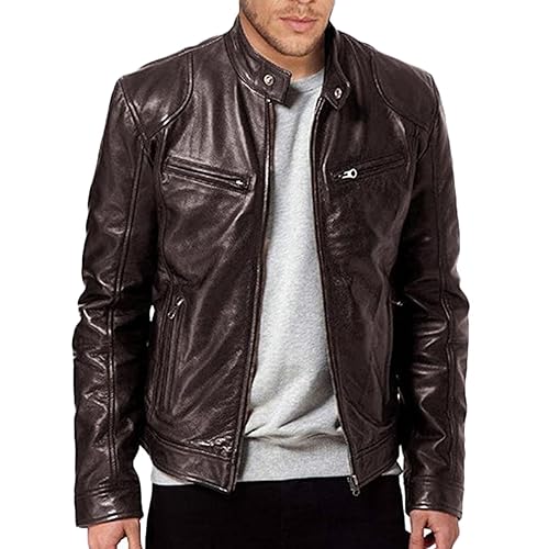 WULFUL Men's Stand Collar Leather Jacket Motorcycle Lightweight Faux Leather Outwear