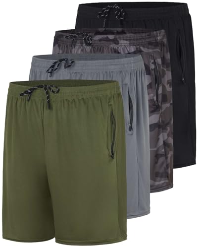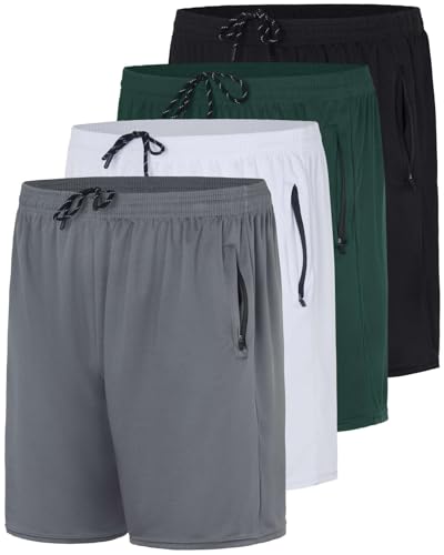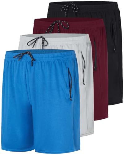 Real Essentials 4 Pack: Men's Mesh 7"/ 5"/ 3" Athletic Zipper Shorts Workout Gym Running Basketball (Big and Tall Available) - Set 10, L