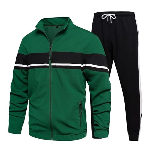 LBL Leading the Better Life Men's Tracksuit Athletic Sports Casual Full Zip Stripe Sweatsuit Set 2 Piece Green M