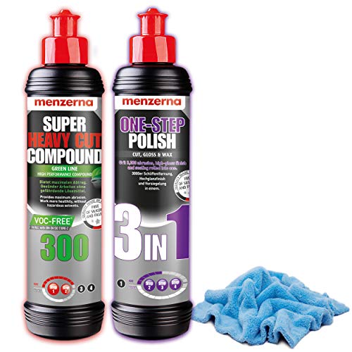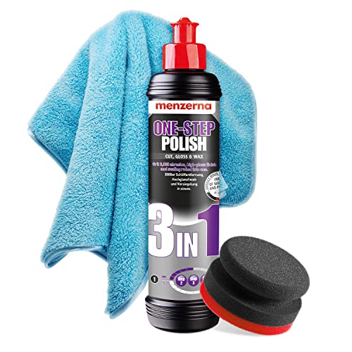 detailmate Bilpoleringsset för nybörjare – Menzerna Medium Cut Politur One-Step-Polish 3-in-1 + Garage Freaks-appliceringssvamp, poleringssvamp + poleringsduk i mikrofiber, lång lugg