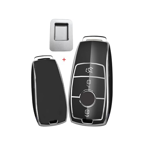 ontto Nyckelfodral bilnyckel fodral passar till Mercedes Benz A C E S klass GLC CLE CLA GLB GLS W177 W205 W213 W222 X167 AMG TPU silikon nyckelfodral skyddsfodral nyckelhållare silver svart