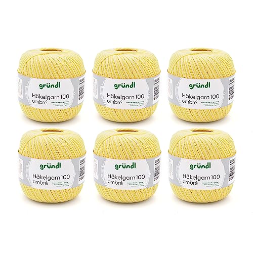 Gründl virkgarn 100 ombré (merceriserat bomullsgarn för virkning av 100% bomull, 100 g/566 m, nåltjocklek: 1,5–2, 6 x 100 g), citron