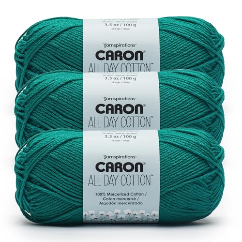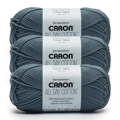 Caron All Day bomull – 3-pack med 170 m/39 oz lantligt blått 100% merceriserat bomullsgarn
