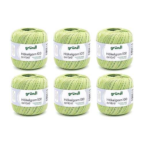 Gründl virkgarn 100 ombré (merceriserat bomullsgarn för virkning av 100% bomull, 100 g/566 m, nåltjocklek: 1,5–2, 6 x 100 g), pistasch