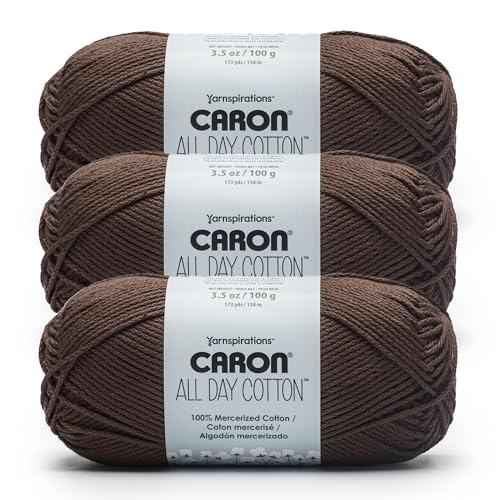 Caron All Day bomull – 3-pack med 173 m/39 ml kaffebönor 100% merceriserat bomullsgarn