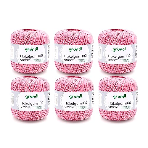 Gründl virkgarn 100 ombré (merceriserat bomullsgarn för virkning av 100% bomull, 100 g/566 m, nåltjocklek: 1,5–2, 6 x 100 g), orkidé