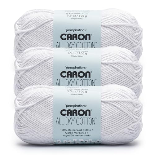 Caron All Day bomull – 3-pack med 170 m/35 oz vit skjorta 100% merceriserat bomullsgarn
