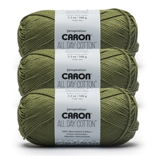 Caron All Day bomull – 3-pack med 173 m/35 oz mossa 100% merceriserat bomullsgarn