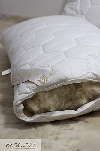 Merino ullpaket med 2 sängkuddar standardkudde 45 x 75 cm 1000 g, 2-pack ! Naturlig sängkläder. Dragkedja i bomull