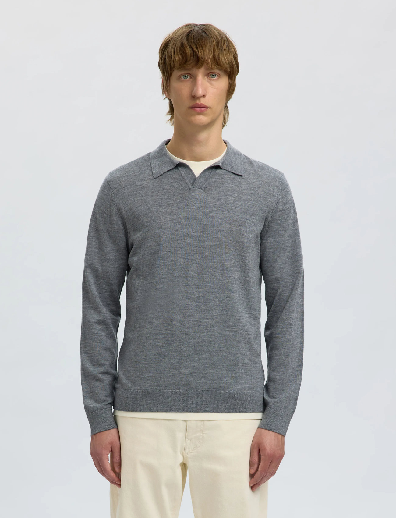 Selected Slhtray Ls Knit Merino Open Polo - Grey - L