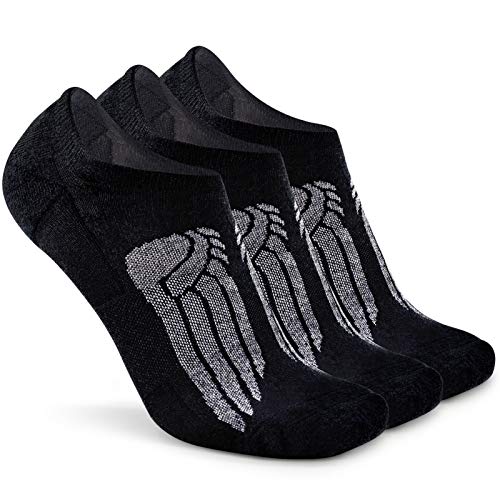 Busy Socks Black Merino Wool Socks Mens, Funny Wing Pattern Soft Anti-Blister Trail Wool Running Support Socks with Anti-skid Silicone, 3 Pairs, Large, Black
