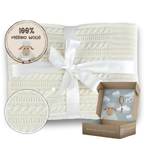 Mirari babyfilt stickad ullfilt 100 % merinoull 75 x 100 cm, babyfilt, varm filt (Ecru