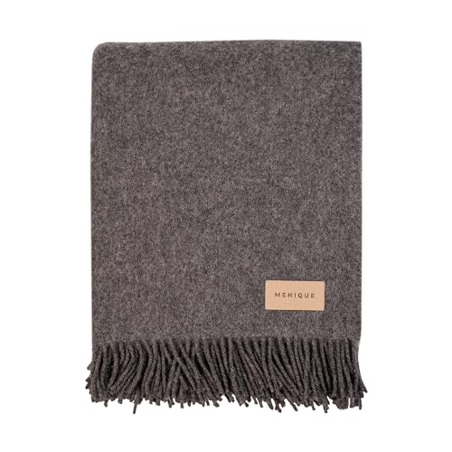 menique 100% merinoull filt MILAN 125x180 cm mörkgrå, tjock pläd rutig extra fin höstfilt