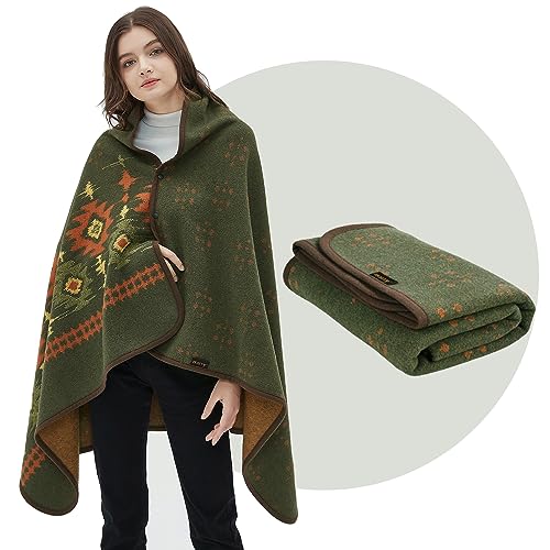 ACUSHLA Merinoull överkastfilt – tjock stor varm tvättbar levande filt överkast för soffa säng soffa utomhus picknick resor camping filt alla årstider – (160 x 200 cm | Navajo-stil grön)
