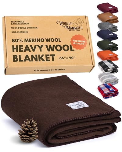 Woolly Mammoth Woolen Co. Extra stor merinoull campingfilt den perfekta utomhusredskapssängen för buskhantverk, camping, vandring, överlevnad eller filt vid stugan. (Brun), 66 tum x 90 tum