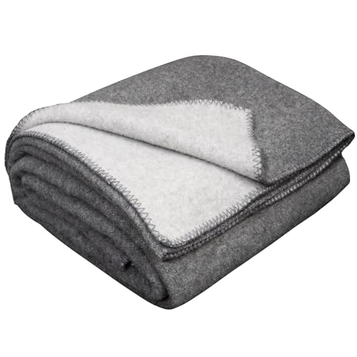 LYHome Merinoull Filt - Nyzeeländsk Fårull Extra Varm för Camping, Bil, Picknick, Armé och Militär. Utomhusfilt att Sova och Mysfilt för Vardagsrummet (150 x 215 cm | Grått - Antracit Dubbelsidig)