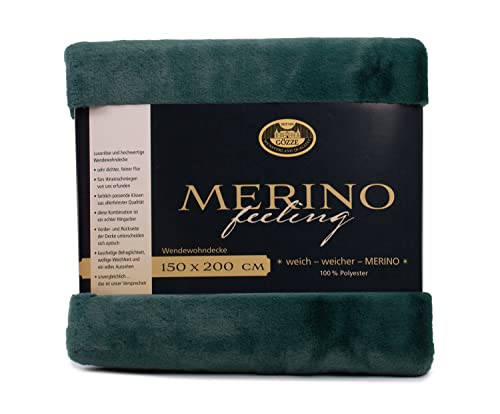 Gözze – mysig filt, merinoull, vändbar, tung vikt 600 g/m², 150 x 200 cm – mörkgrön