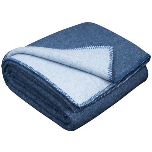 LYHome Merinoull Filt - Nyzeeländsk Fårull Extra Varm för Camping, Bil, Picknick Armé och Militär. Utomhusfilt att Sova och Mysfilt för Vardagsrummet (130 x 170 cm | Blått - Ljusblått Dubbelsidig)
