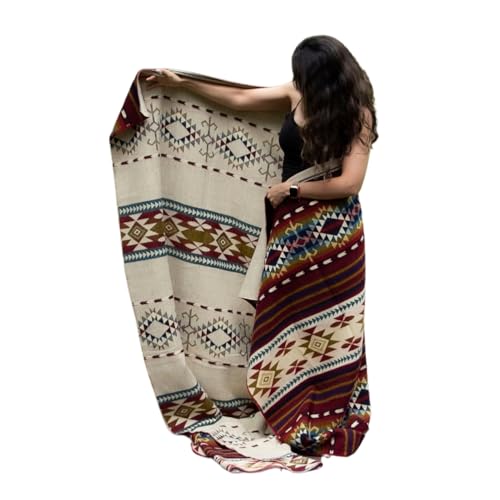 ACUSHLA Merinoull lägerfilt – varm tjock tvättbar stor filt – bra utomhus camping sovfilt alla årstider indisk stil 79 x 63