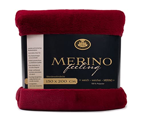 Gözze – mysig filt, merinoull, vändbar, tung vikt 600 g/m², 150 x 200 cm – karmosinröd
