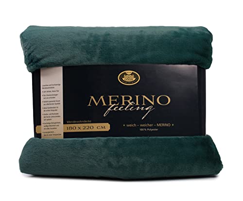 Gözze – mysig filt, merinoull, vändbar, tung vikt 600 g/m², 180 x 220 cm – mörkgrön