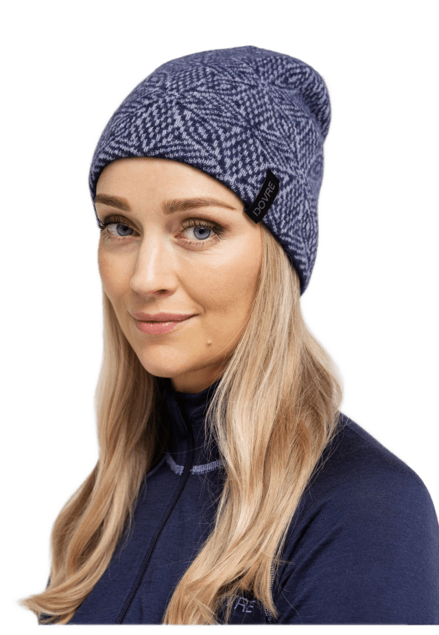 Dovre 100% Merinoull, Mössa Med Mönster, Marinblått Grå
