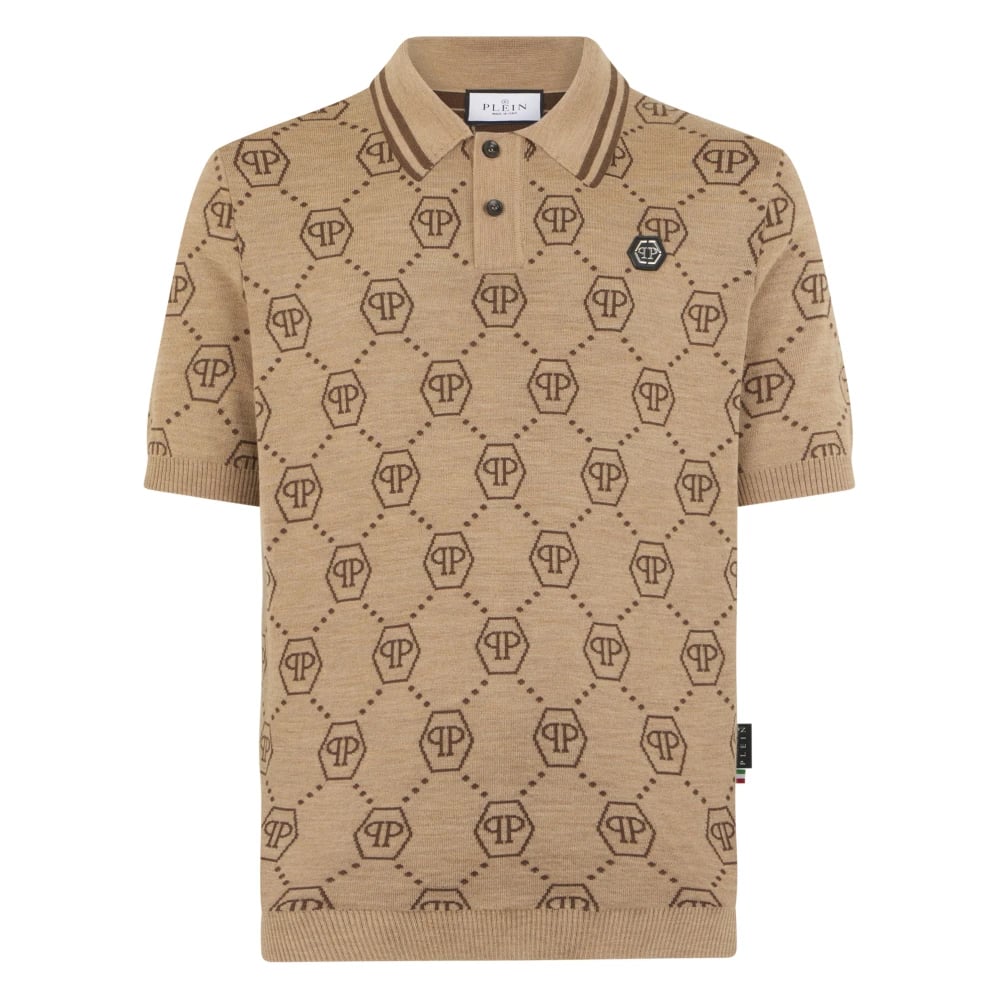 Philipp Plein, Stickade Tröjor , Herr, S, Merinoull Polo T-shirt Jacquard Monogram