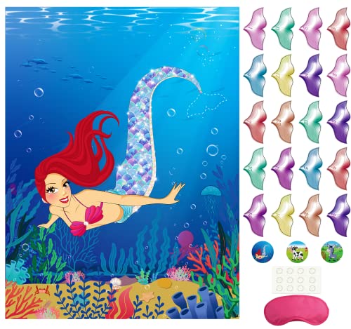 Morcheiong Pin The Tail on The Mermaid födelsedagsfest spel med 48 svansar för barn sjöjungfru födelsedagstillbehör dekorationer presenter