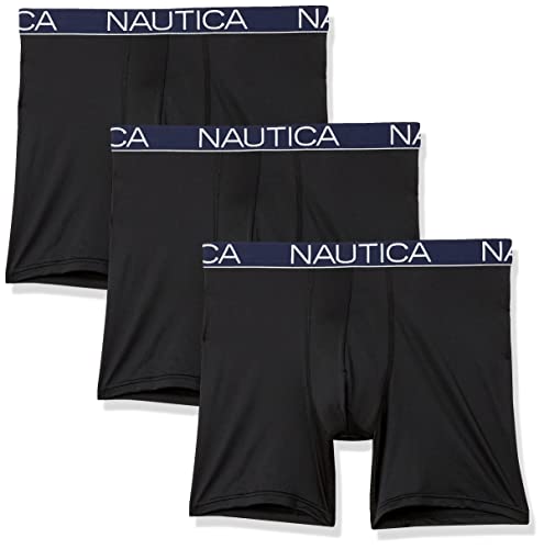 Nautica Men's Stretch Light Weight Mesh 3 Pack Boxer Brief, Black, Medium
