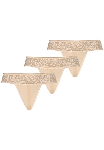 Teyli Damstringtrosa i mesh med spets 3-pack, Beige, L