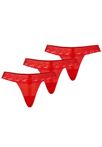 Teyli Damstringtrosa i mesh med spets 3-pack, röd, S